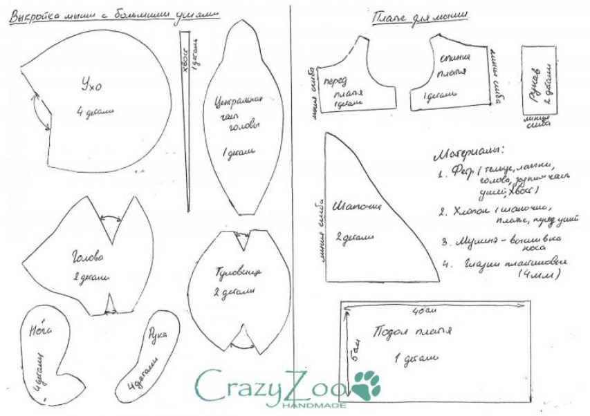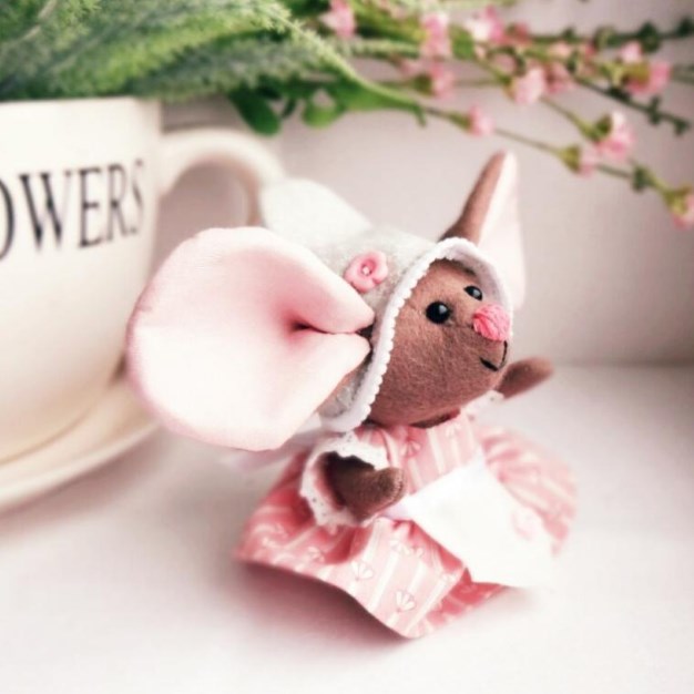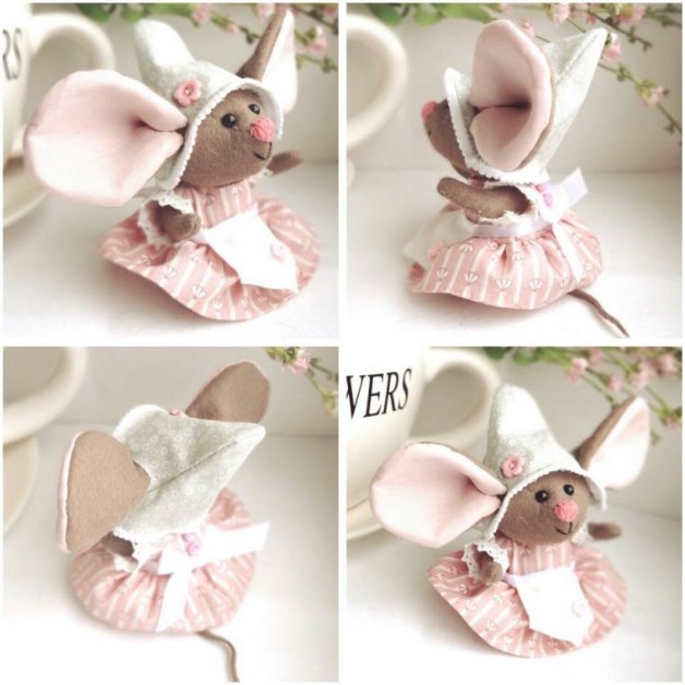 Данная мышка шьётся из фетра (используем для тела) и хлопчатобумажной ткани (для внутреннего ушка и одежды). Для тельца также можно использовать флис.