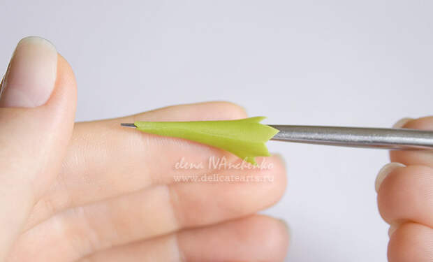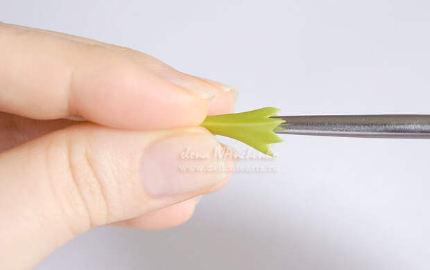 Далее берем стек и раскатываем каждый лепесточек на пальце. Наша задача в данном случае – сделать лепесток еще тоньше.