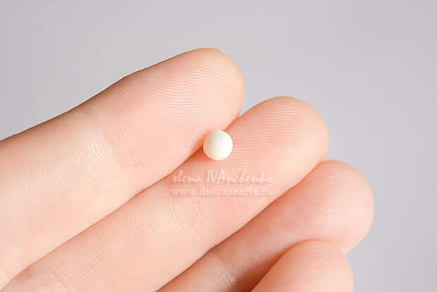 Далее берем небольшое количество белой глины. Катаем шарик и расплющиваем его, чтобы был ровный кружочек