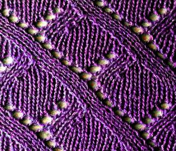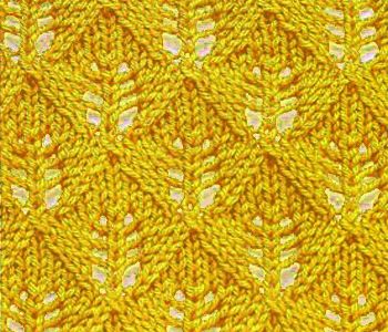 Для образца набираем число петель кратно 8 +1 + 2 кромочные. В описании кромочные не указаны. 1-й, 3-й, 5-й и 7-й ряды: * 1 п. изн, 1 п. лиц. *, повторяем от * до *; 2-й, 4-й, 6-й. и 8-й ряды: лицевые петли вяжем изнаночными, изнаночные - лицевыми; 9-й ряд: * 1 п. лиц, 1 нак., 2 п. вместе справа, 3 п. лиц., 2 п. вместе влева, 1 нак.. *, повторяем от * до *, 1 п. лиц.; 10-й, 12-й и 14-й ряды: как смотрят петли, накиды - изнаночными; 11-й ряд: * 2 п. лиц., 1 нак., 2 вместе справа, 1 п. лиц., 2 п. вместе слева, 1 нак, 1 п. лиц. *, повторяем от * до *, 1 п. лиц.; 13-й ряд: * 3 п. лиц. 1 нак., 3 п. вместе лиц., 1 нак., 2 п. лиц. *, повторяем от * до *, 1 п. лиц.